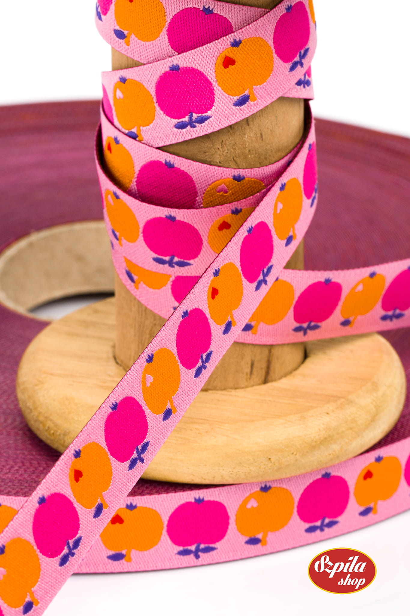 Tkana tasiemka w pomarańczowo-różowe jabłuszka.