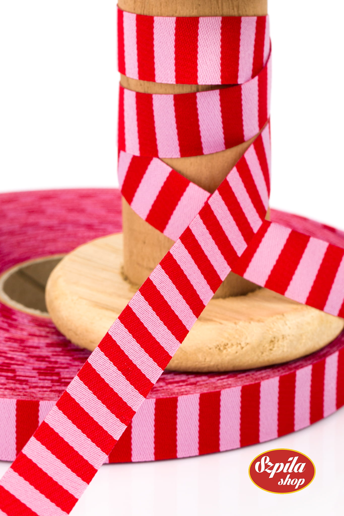 Tasiemka tasiemka, dwustronna w czerwono-różowe pasy