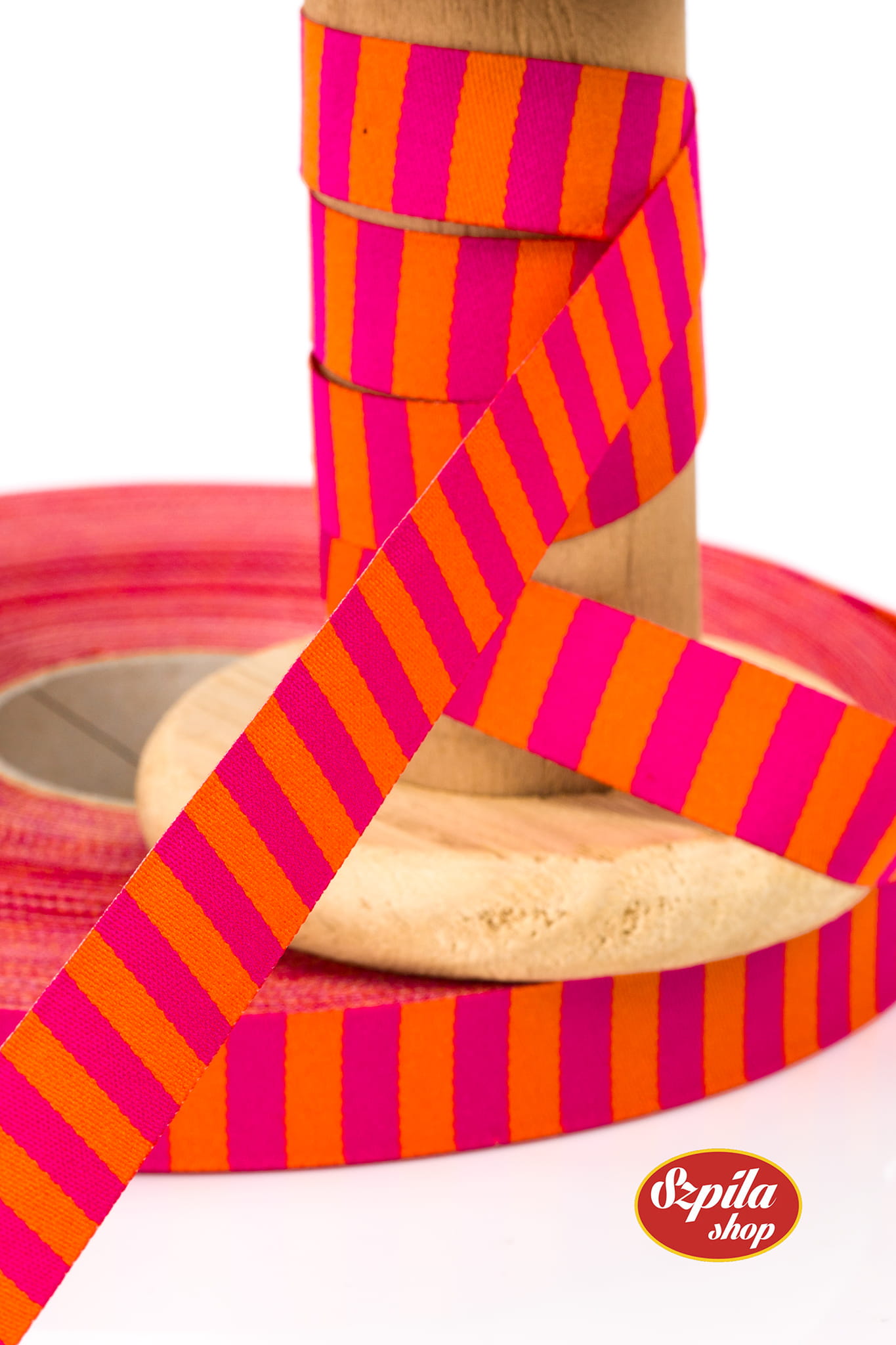 Tasiemka tkana w pomarańczowo-różowe pasy