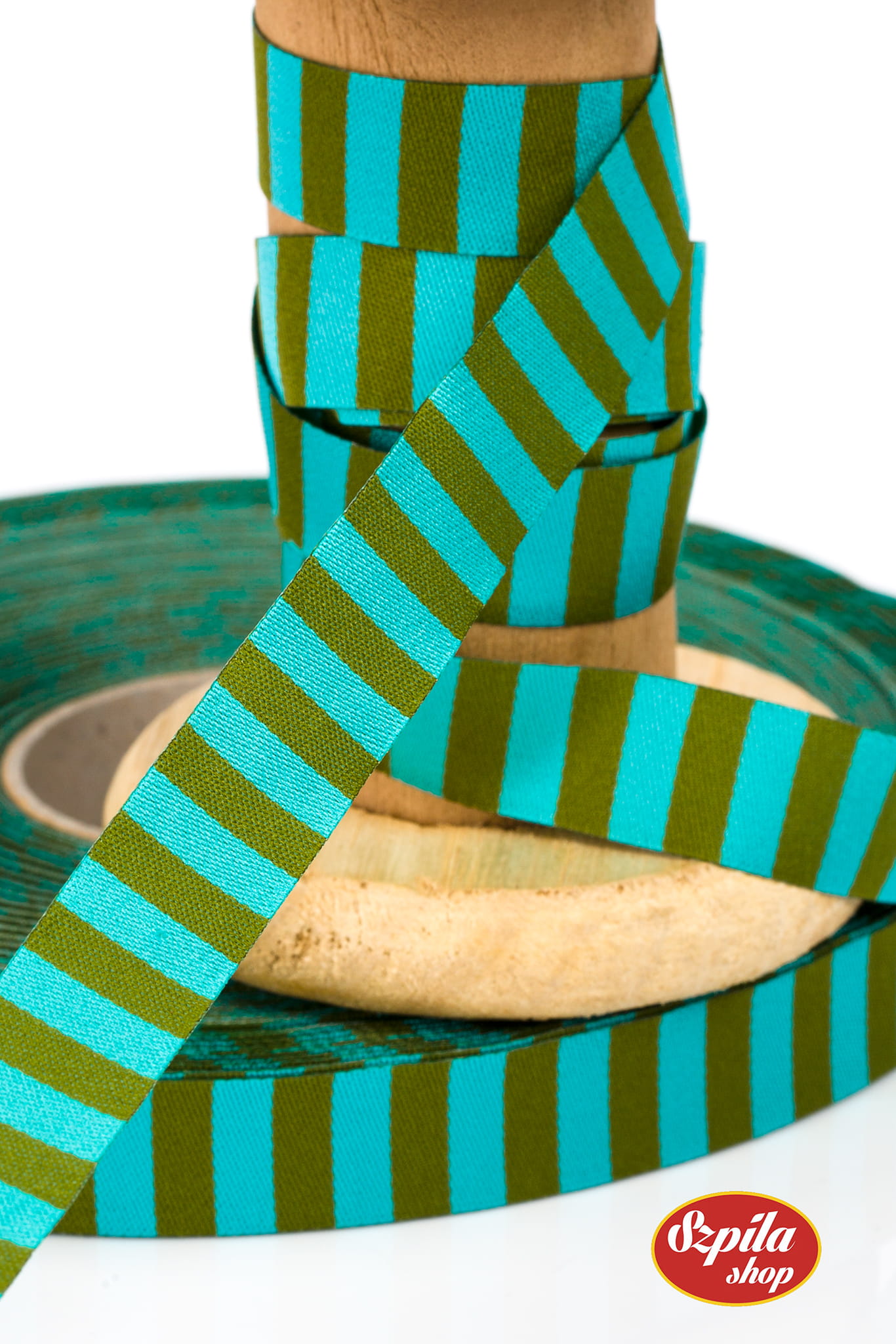 Tkana tasiemka dwustronna w turkusowo-zielone pasy